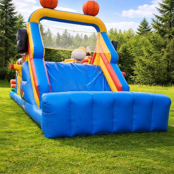 Plaša, krāsaina un enerģiska piepūšamā atrakcija sporta tematikā, kas apvieno šķēršļu trasi, kāpšanu un aizraujošu nobraucienu pa slidkalniņu. Bērniem būs jālien cauri šķēršļiem, jāapiet piepūšamie elementi un jāuzkāpj augšā, lai noslēgumā, ar smaidu sejā, šļūktu lejā. Ideāli piemērota dzimšanas dienām, sporta svētkiem un jebkuram pasākumam, kur vajag kustību, azartu un prieku!