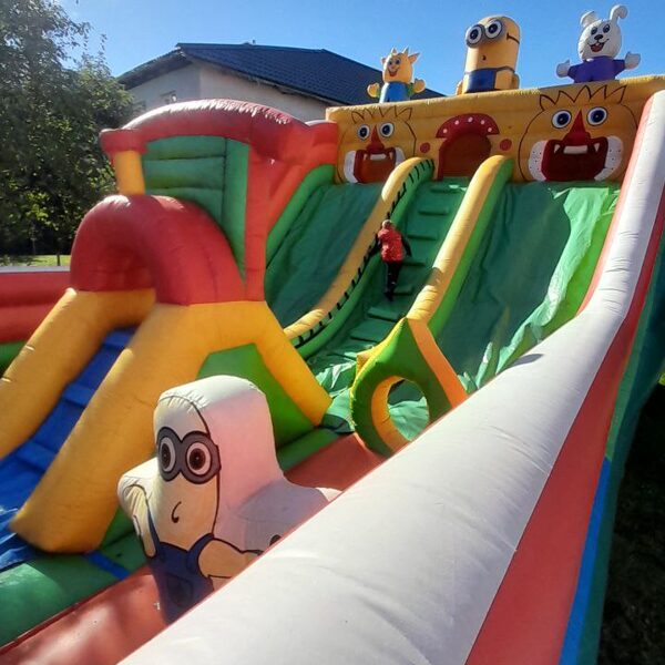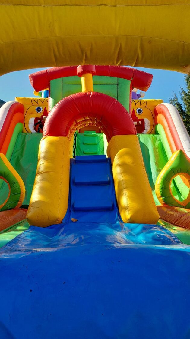 Krāsaina un aizraujoša atrakcija ar šķēršļu zonu, lēkāšanas laukumu un aizraujošu nobraucienu! Bērni var kāpt, lēkt un šļūkt, izbaudot īstu džungļu piedzīvojumu drošā un jautrā vidē kopā ar Madagaskaras tēliem. Ideāli piemērota svētkiem, sporta dienām un privātām ballītēm – garantēta enerģija un smaidi visas dienas garumā!