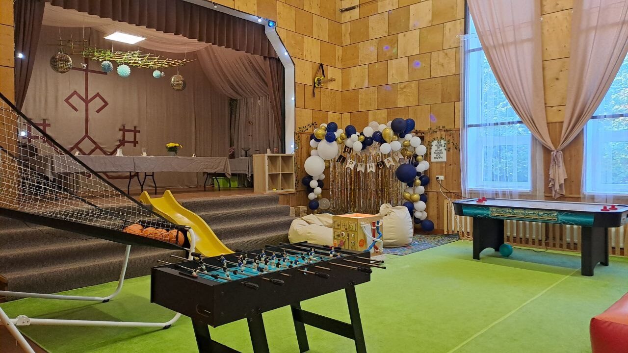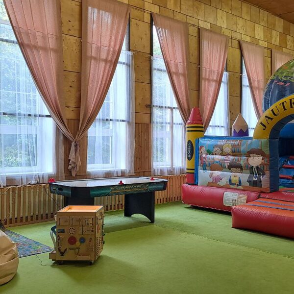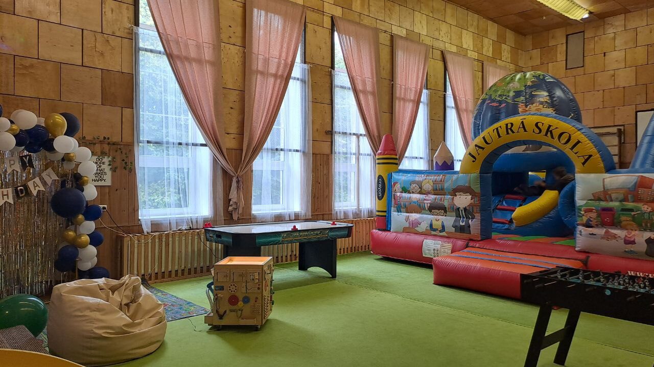 Esam iekārtojuši svinību telpas privātām bērnu ballītēm dažu minūšu braucienā no Saldus centra! Platība vairāk par 150m² Bērniem pieejama piepūšamā atrakcija, galda spēles, attīstošais kubs, bumbas, basketbola grozi, jaudīga mūzikas sistēma, u.c.
