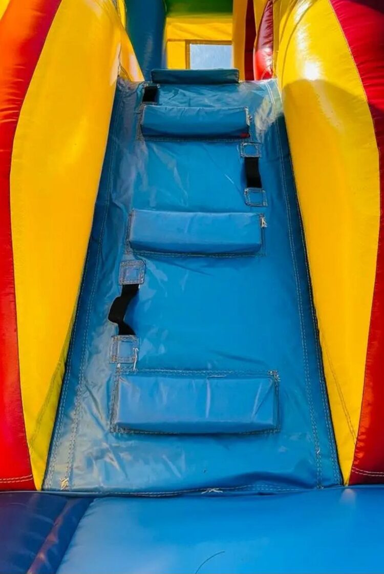 Spilgta, interesanta piepūšamā atrakcija ar šķēršļiem, tuneli un samērā augstu kalniņu.