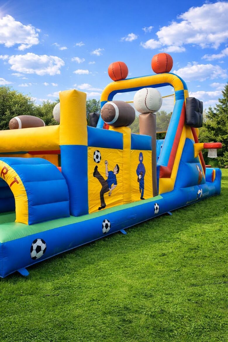 Plaša, krāsaina un enerģiska piepūšamā atrakcija sporta tematikā, kas apvieno šķēršļu trasi, kāpšanu un aizraujošu nobraucienu pa slidkalniņu. Bērniem būs jālien cauri šķēršļiem, jāapiet piepūšamie elementi un jāuzkāpj augšā, lai noslēgumā, ar smaidu sejā, šļūktu lejā. Ideāli piemērota dzimšanas dienām, sporta svētkiem un jebkuram pasākumam, kur vajag kustību, azartu un prieku!